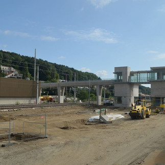 130 Stufen, und mit Kinderwagen und einem Kind an der Hand schwer zu benützen. Und wie sieht es denn mit alten und gehbehinderten Menschen aus, für die die 38 Stufen schon fast ein unüberwindbares Hindernis war? Wird ed Aufzüge geben um auch alle Bahnsteige barrierefrei erreichen zu können? Und hat man eigentlich auch für genügend Behindertenparkplätze im Nahbereich des Bahnhofes Vorsorge getroffen. Bei vielen Bauprojekten hat man heute das Gefühl, dass man auf Behinderte und alte gebrechliche Menschen total vergessen hat, oder dass den Planern und den Bauherren diese egal sind. Ein Vorzeigeprojekt an Nachhaltigkeit, Formschönheit und architektonischer Meisterleistung ist der neue Aussichtsturm am Pyramiedenkogel. Den hätte man sich bei der Gestaltung der neuen Brücke als Vorbildn nehmen sollen.